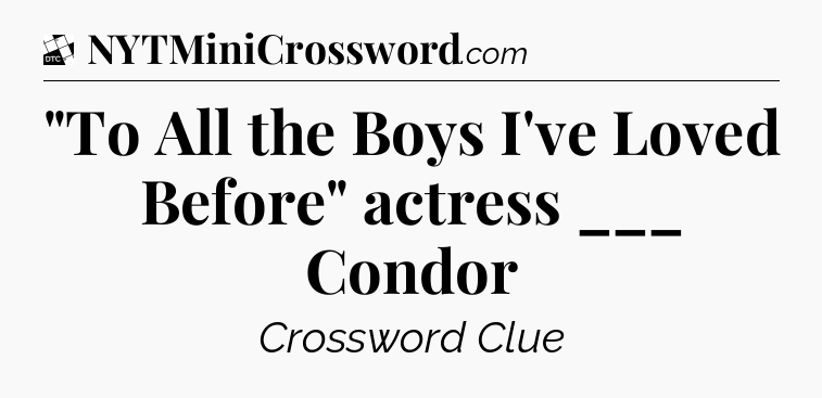 This simple page contains the answer to the crossword clue ‘“To All the Boys I’ve Loved Before” actress ___ Condor‘ that was published in Daily Themed Crossword March 9 2023.