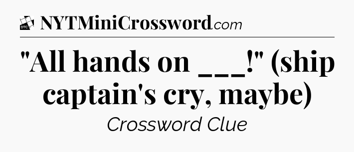 What is the answer to the clue “”All hands on ___!” (ship captain’s cry, maybe)”?