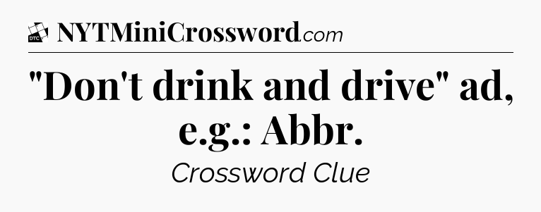 The clue “”Don’t drink and drive” ad, e.g.: Abbr” most recently appeared in a Daily Themed Classic Crossword on April 10, 2025.