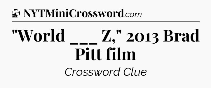 The clue “”World ___ Z,” 2013 Brad Pitt film” most recently appeared in a Daily Themed Classic Crossword on April 14, 2025.