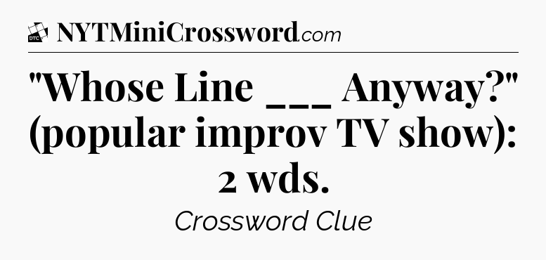 The clue “”Whose Line ___ Anyway?” (popular improv TV show): 2 wds” most recently appeared in a Daily Themed Classic Crossword on April 15, 2025.