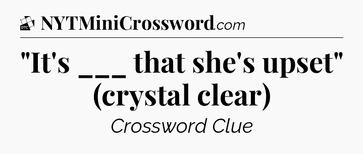 The Answer for ‘”It’s ___ that she’s upset” (crystal clear)’ Crossword Clue is: