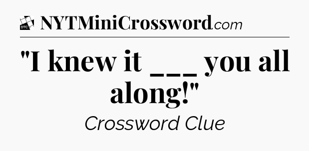 The clue “”I knew it ___ you all along!”” most recently appeared in a Daily Themed Classic Crossword on April 21, 2023.