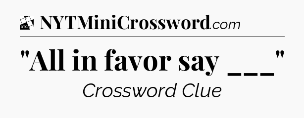 The clue “”All in favor say ___”” most recently appeared in a Daily Themed Classic Crossword on April 21, 2025.