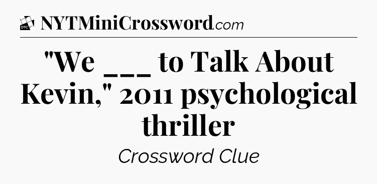 The clue “”We ___ to Talk About Kevin,” 2011 psychological thriller” most recently appeared in a Daily Themed Classic Crossword on April 4, 2023.