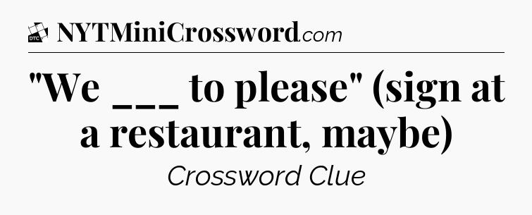 The Answer for ‘”We ___ to please” (sign at a restaurant, maybe)’ Crossword Clue is:
