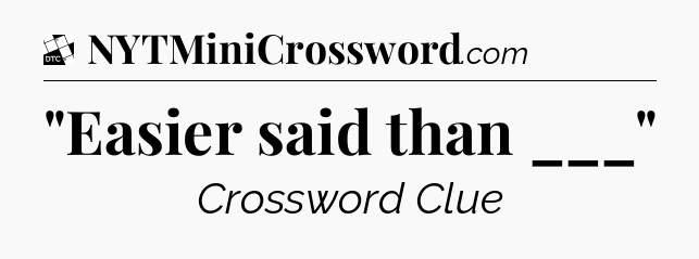 The Answer for ‘”Easier said than ___”‘ Crossword Clue is: