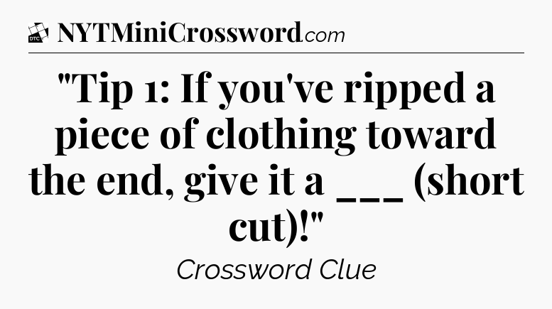 “”Tip 1: If you’ve ripped a piece of clothing toward the end, give it a ___ (short cut)!”” Daily Themed Classic Crossword Clue: Frequently Asked Questions