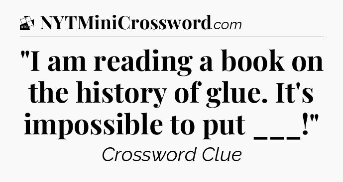 The clue “”I am reading a book on the history of glue. It’s impossible to put ___!”” most recently appeared in a Daily Themed Classic Crossword on May 11, 2024.