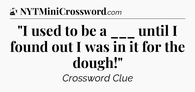 The clue “”I used to be a ___ until I found out I was in it for the dough!”” most recently appeared in a Daily Themed Classic Crossword on May 11, 2025.