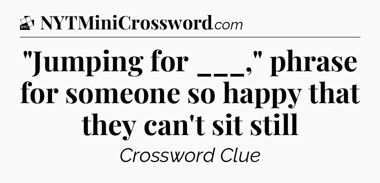 The clue “”Jumping for ___,” phrase for someone so happy that they can’t sit still” most recently appeared in a Daily Themed Classic Crossword on May 15, 2025.