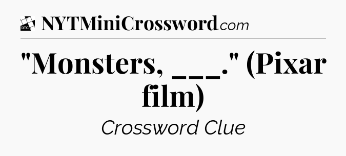 There is 1 possible answer for the crossword clue “”Monsters, ___.” (Pixar film)”.