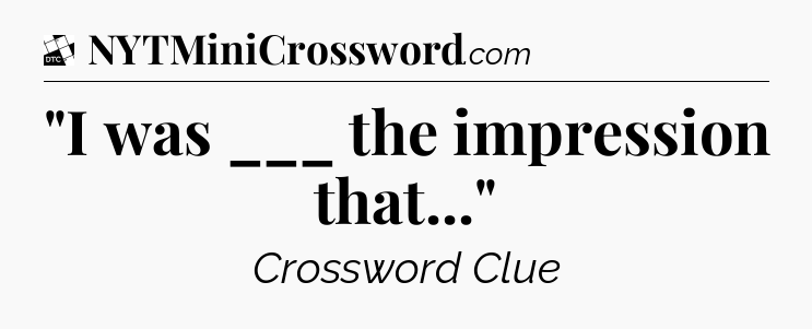 The Answer for ‘”I was ___ the impression that…”‘ Crossword Clue is: