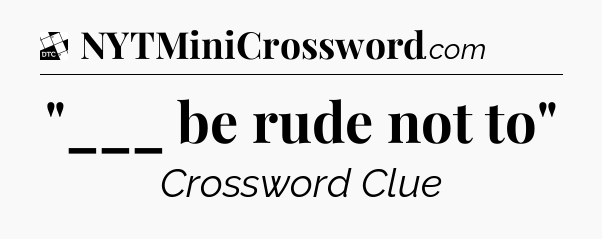 This simple page contains the answer to the crossword clue ‘“___ be rude not to”‘ that was published in Daily Themed Crossword May 24 2023.