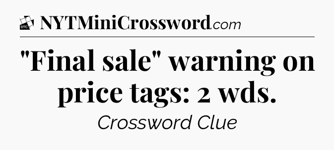 The clue “”Final sale” warning on price tags: 2 wds” most recently appeared in a Daily Themed Classic Crossword on May 25, 2023.