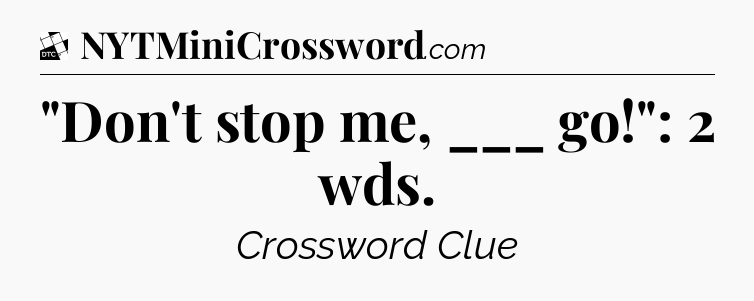 The Answer for ‘”Don’t stop me, ___ go!”: 2 wds’ Crossword Clue is: