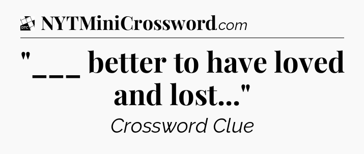 The Answer for ‘”___ better to have loved and lost…”‘ Crossword Clue is:
