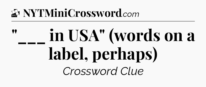 There is 1 possible answer for the crossword clue “”___ in USA” (words on a label, perhaps)”.