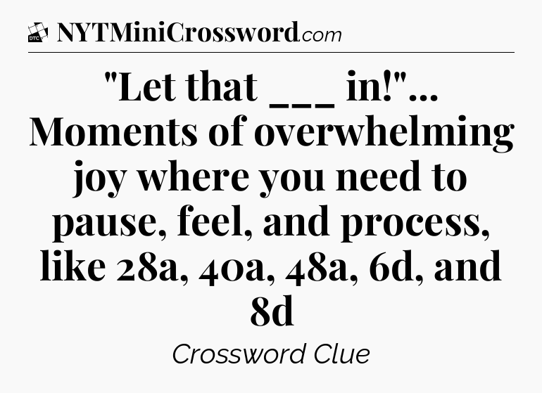 The clue “”Let that ___ in!”… Moments of overwhelming joy where you need to pause, feel, and process, like 28a, 40a, 48a, 6d, and 8d” most recently appeared in a Daily Themed Classic Crossword on May 7, 2025.
