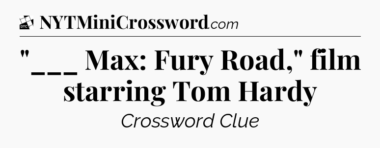 The clue “”___ Max: Fury Road,” film starring Tom Hardy” most recently appeared in a Daily Themed Classic Crossword on May 8, 2024.
