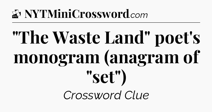 The clue “”The Waste Land” poet’s monogram (anagram of “set”)” most recently appeared in a Daily Themed Classic Crossword on May 8, 2024.