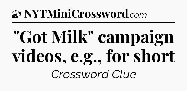The Answer for ‘”Got Milk” campaign videos, e.g., for short’ Crossword Clue is: