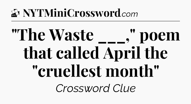 The clue “”The Waste ___,” poem that called April the “cruellest month”” most recently appeared in a Daily Themed Classic Crossword on June 11, 2025.