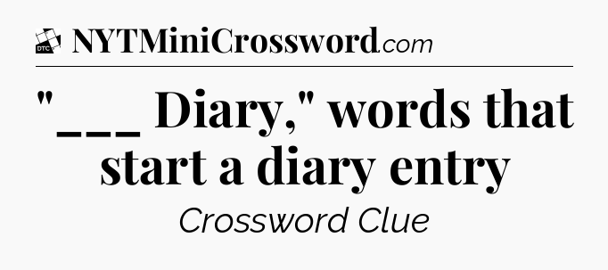 The clue “”___ Diary,” words that start a diary entry” most recently appeared in a Daily Themed Classic Crossword on June 2, 2024.
