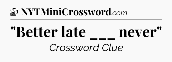 The Answer for ‘”Better late ___ never”‘ Crossword Clue is: