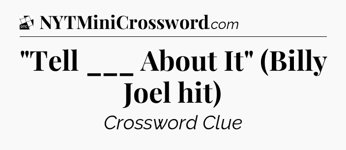 The clue “”Tell ___ About It” (Billy Joel hit)” most recently appeared in a Daily Themed Classic Crossword on June 4, 2023.