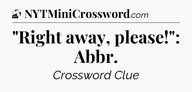 The clue “”Right away, please!”: Abbr” most recently appeared in a Daily Themed Classic Crossword on June 5, 2023.