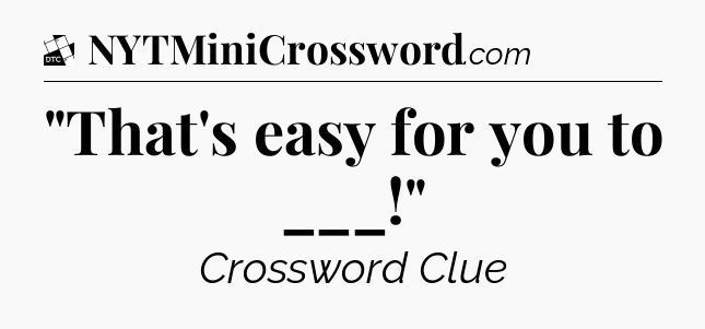 The Answer for ‘”That’s easy for you to ___!”‘ Crossword Clue is: