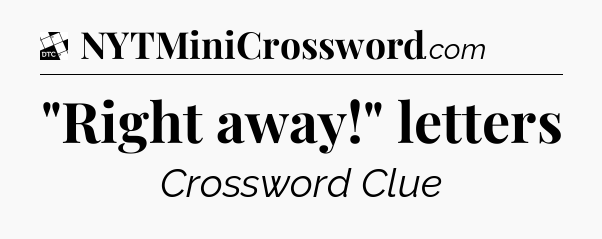 The clue “”Right away!” letters” most recently appeared in a Daily Themed Classic Crossword on June 9, 2025.