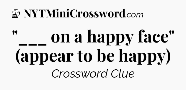 The correct answer to the crossword clue “”___ on a happy face” (appear to be happy)” is PUT.