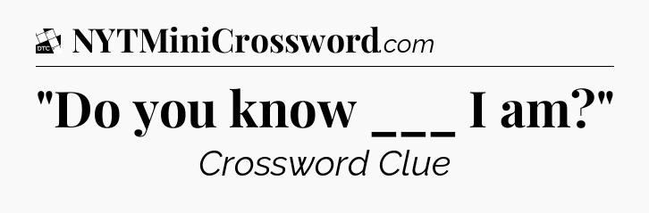 The clue “”Do you know ___ I am?”” most recently appeared in a Daily Themed Classic Crossword on July 11, 2024.