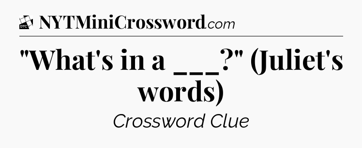 The clue “”What’s in a ___?” (Juliet’s words)” most recently appeared in a Daily Themed Classic Crossword on July 11, 2024.