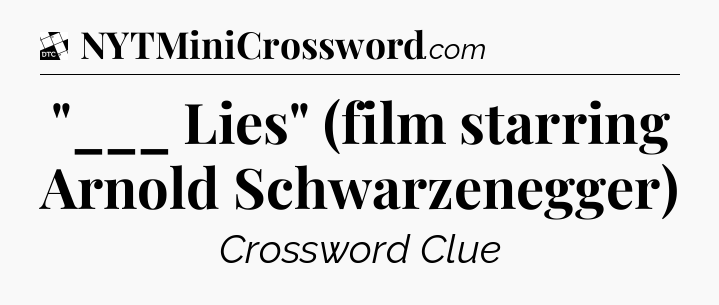The clue “”___ Lies” (film starring Arnold Schwarzenegger)” most recently appeared in a Daily Themed Classic Crossword on July 12, 2024.