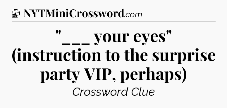 The clue “”___ your eyes” (instruction to the surprise party VIP, perhaps)” most recently appeared in a Daily Themed Classic Crossword on July 12, 2024.