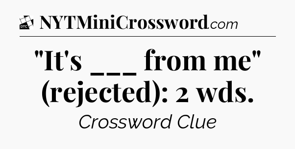 The clue “”It’s ___ from me” (rejected): 2 wds” most recently appeared in a Daily Themed Classic Crossword on July 12, 2024.