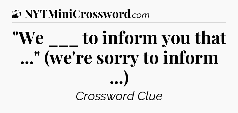 The clue “”We ___ to inform you that …” (we’re sorry to inform …)” most recently appeared in a Daily Themed Classic Crossword on July 13, 2025.