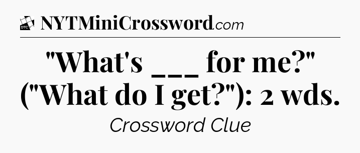 The clue “”What’s ___ for me?” (“What do I get?”): 2 wds” most recently appeared in a Daily Themed Classic Crossword on July 13, 2025.