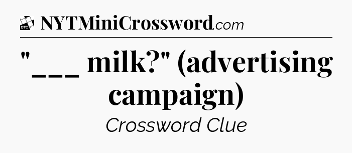 The clue “”___ milk?” (advertising campaign)” most recently appeared in a Daily Themed Classic Crossword on July 14, 2023.