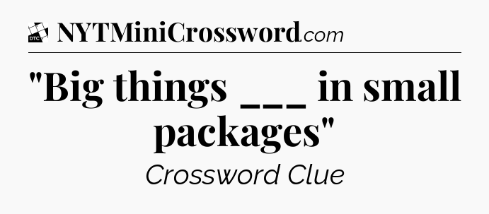 The clue “”Big things ___ in small packages”” most recently appeared in a Daily Themed Classic Crossword on July 16, 2023.