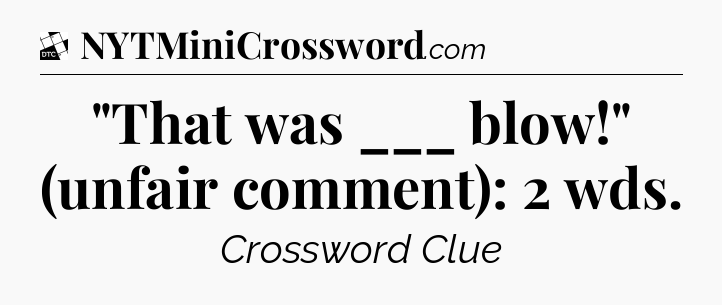 What is the answer to the clue “”That was ___ blow!” (unfair comment): 2 wds”?