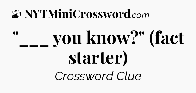 There is 1 possible answer for the crossword clue “”___ you know?” (fact starter)”.