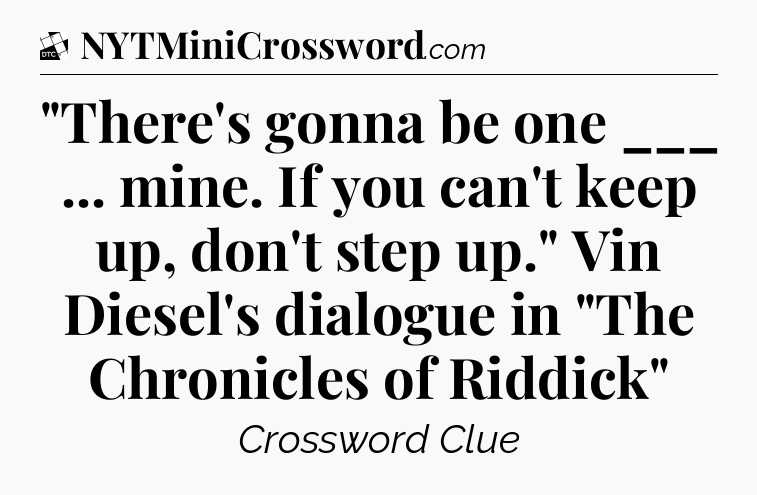 The clue “”There’s gonna be one ___ … mine. If you can’t keep up, don’t step up.” Vin Diesel’s dialogue in “The Chronicles of Riddick”” most recently appeared in a Daily Themed Classic Crossword on July 18, 2024.