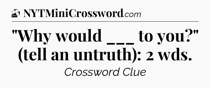 The clue “”Why would ___ to you?” (tell an untruth): 2 wds” most recently appeared in a Daily Themed Classic Crossword on July 21, 2025.