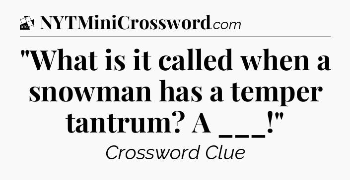 The clue “”What is it called when a snowman has a temper tantrum? A ___!”” most recently appeared in a Daily Themed Classic Crossword on July 22, 2025.