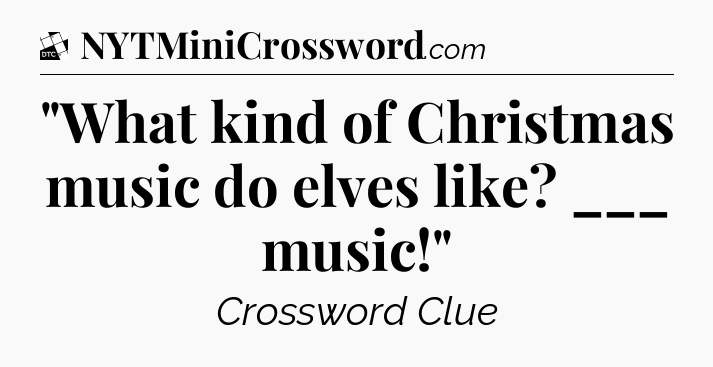 The clue “”What kind of Christmas music do elves like? ___ music!”” most recently appeared in a Daily Themed Classic Crossword on July 22, 2025.