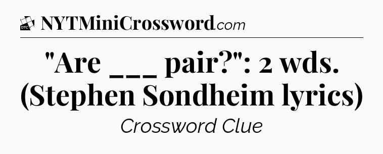 The clue “”Are ___ pair?”: 2 wds. (Stephen Sondheim lyrics)” most recently appeared in a Daily Themed Classic Crossword on July 24, 2025.